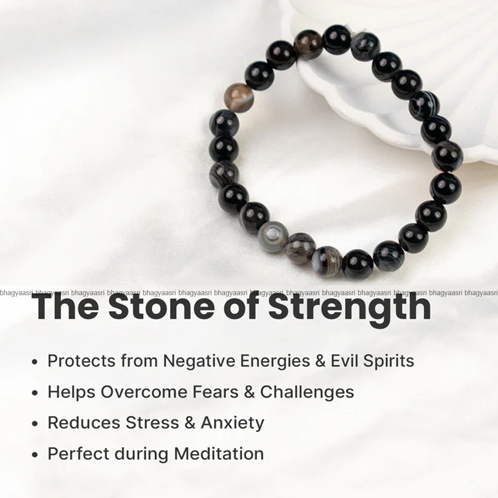 The Black Agate Bracelet is a powerful protective and grounding accessory made from natural Black Agate stones, known for their ability to absorb negative energy and promote emotional strength. Often called the “Stone of Stability & Protection,” Black Agate helps bring balance, confidence, and inner peace.