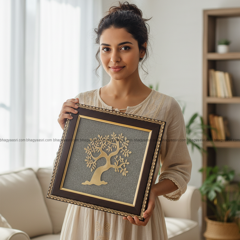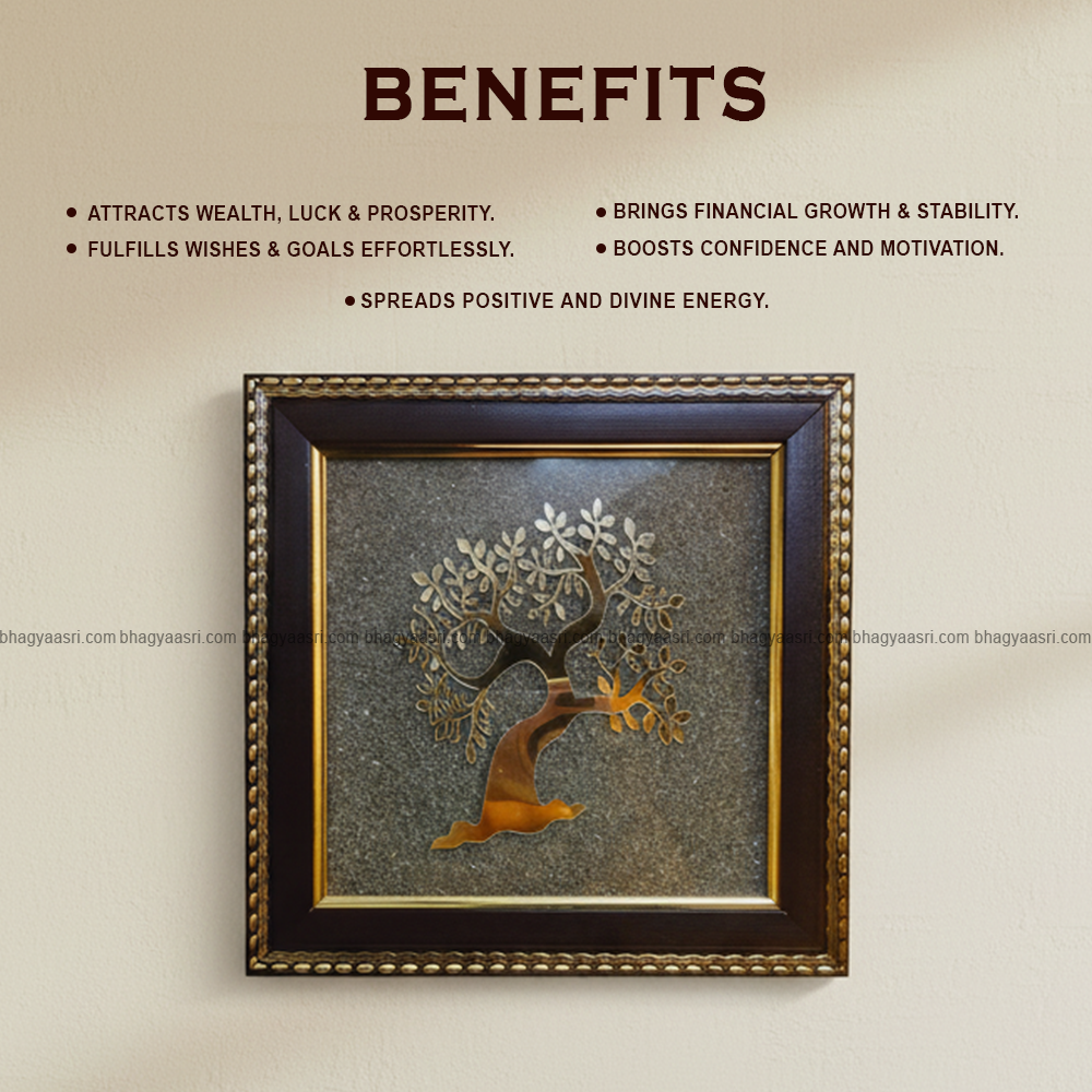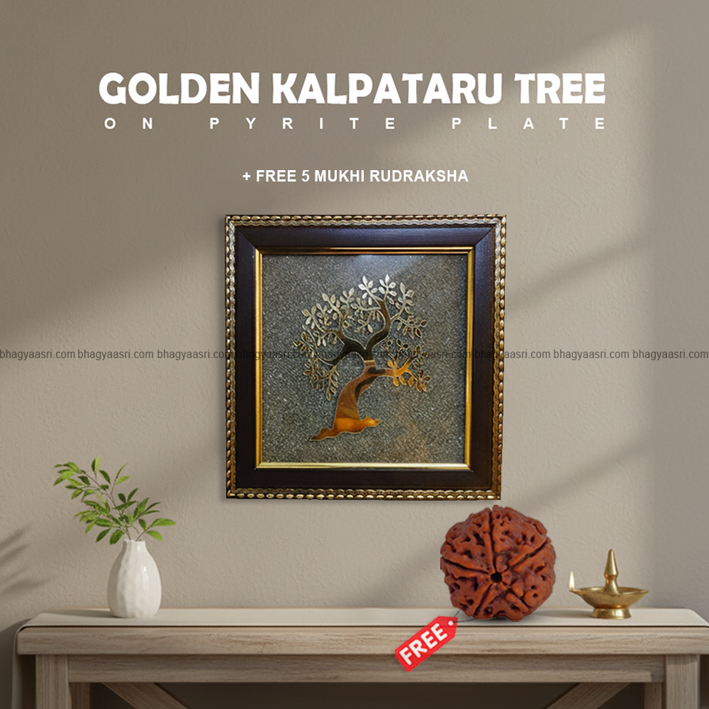 The Golden Kalpataru Tree on Pyrite Plate is a premium vastu and spiritual décor piece symbolizing wish fulfillment, abundance, and prosperity. The Kalpataru (Wish-Fulfilling Tree) is considered a divine tree in Hindu mythology that grants desires and blessings, while the golden tree design represents growth, success, and positive energy.